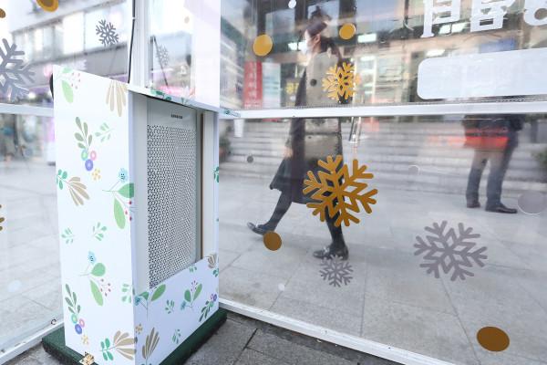 | ▲ 양재역 환승센터 앞 기존 ‘서리풀 이글루’에 설치된 스탠드형 공기청정기. (사진제공=서초구청) | ||