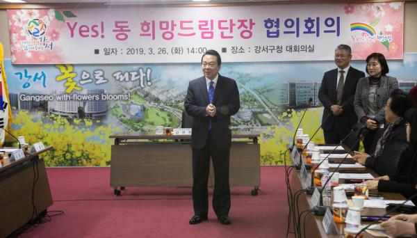 서울 강서구는 26일 구청 대회의실에서 동 희망드림단장 20명이 참석한 가운데 복지사각지대 발굴을 위한 ‘동 희망드림단 협의회의’를 개최했다. 이날 참여자들은 희망드림단의 활동사례를 공유하고 운영 방향에 대해 논의했다. 사진은 노현송 구청장이 인사말을 전하는 모습. (사진제공=강서구청)