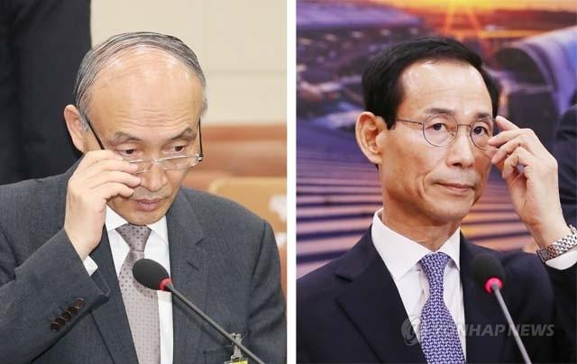조동호 과학기술정보통신부 장관 후보자가 27일 국회 과학기술정보방송통신위원회에서 열린 인사청문회에서 안경을 만지고 있다(왼쪽). 최정호 국토교통부 장관 후보자가 25일 국회 국토교통위원회에서 열린 인사청문회에서 의원들의 질의를 듣고 있다.