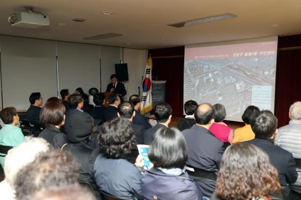 서울 강남구가 최근 지역내 22개동에서 개최된 ‘2019 강남구 예산보고회’를 개최했다. 이번 보고회는 동영상을 제작·배포하는 새로운 방식으로 진행했다. 사진은 동영상으로 제작된 예산보고회에 참여한 주민들의 모습. (사진제공=강남구청)