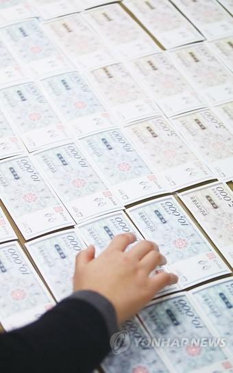경기도 내 31개 시·군 전역에서 지역화폐 발행이 시작된 1일 오후 경기도 성남시청에서 관계자들이 성남시 지역화폐인 성남사랑상품권을 살펴보고 있다.