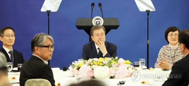 문재인 대통령이 1일 청와대에서 시민사회단체 간담회 중 엄창환 전국청년정책네트워크 대표의 발언을 듣고 있다. 이날 간담회에는 경실련, 참여연대, 범시민사회단체연합, 소비자연맹 등 진보, 보수, 중립성향 단체와 정부 관계자를 포함한 100여명이 참석했다.