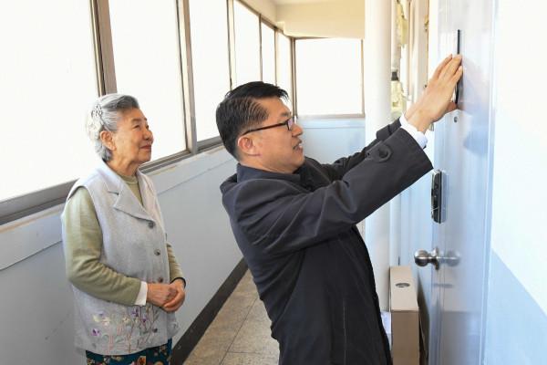 김대순 경기 양주시 부시장은 1일 회천2동에 거주하는 고(故) 강영갑 선생의 자녀 강순자씨(77) 자택을 직접 방문해 깊은 감사와 경의를 표하며 '독립유공자 명패'를 직접 달아주고 감사의 마음을 전했다. 사진은 김 부시장이 명패를 달고 있는 모습. (사진제공=양주시청)