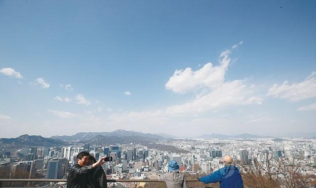 맑은 날씨를 보인 2일 오후 서울 남산에서 바라본 하늘이 파랗다. 3일도 중국 산둥반도 부근에서 남동진하는 고기압의 영향으로 전국이 맑겠다.