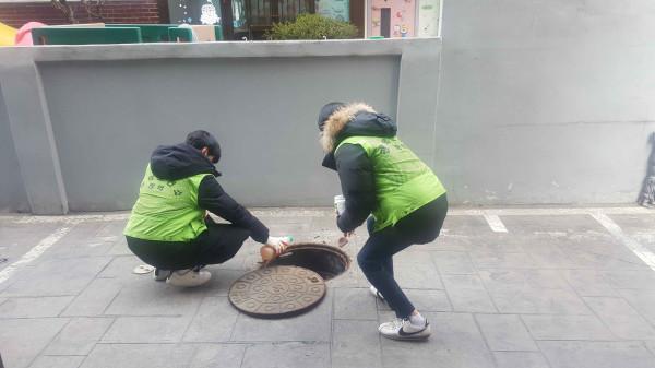 | ▲ 방역기동반이 유충 구제작업을 하고 있는 모습. (사진제공=관악구청) | ||