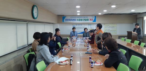 인천 남동구 만수5동은 2일 주민자치센터 운영 활성화 방안 논의를 위해 주민자치센터 수강생과의 소통간담회를 했다. 사진은 참여자들이 자치센터 운영 전반에 대한 건의사항 및 개선방안에 대해 의견을 나누고 있는 모습. (사진제공=남동구청)