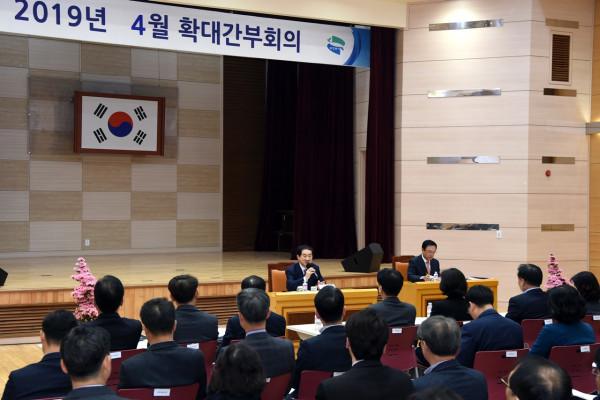 경기 의정부시는 4일 시청 대강당에서 국·단·소·권역동장 및 각 부서장 80여명이 참석한 가운데 4월 중 확대간부회의를 개최하고 주요현안사업에 대해 논의했다. 사진은 안병용 시장이 발언하는 모습. (사진제공=의정부시청)