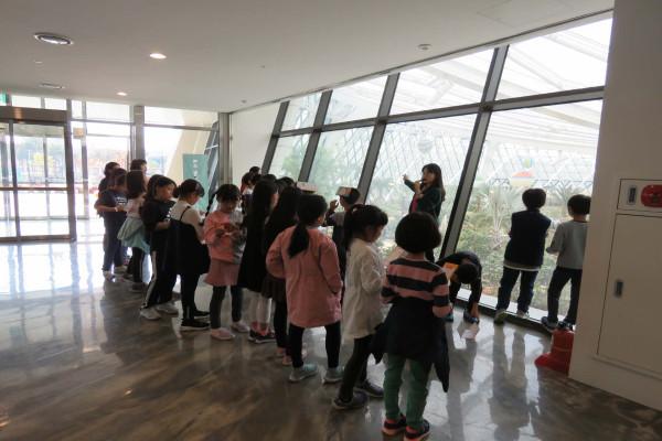 | ▲ 2018년 프로그램에 참여한 아이들이 서울식물원에서 해설사의 설명을 듣고 있는 모습. (사진제공=강서구청) | ||