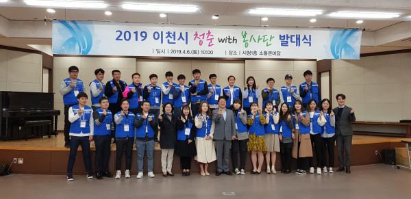 경기 이천시는 최근 시청 소통큰마당에서 ‘제1기 청춘with봉사단’ 발대식을 개최했다. 이날 발대식은 위촉식, 오리엔테이션, 자원봉사자 교육 등의 순으로 진행됐다. 사진은 봉사단원들과 엄태준 시장(왼쪽 여덟번째)이 기념촬영을 하는 모습. (사진제공=이천시청)