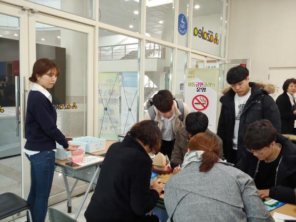 경기 남양주시 풍양보건소는 10일 경복대학교 창조관 1층 학생구내식당에서 학생들과 교직원들을 대상으로 이동금연클리닉을 운영했다. 이날 금연클리닉은 1대1 맞춤형 개별 상담 등으로 진행됐다. 사진은 금연클리닉이 진행되고 있는 모습. (사진제공=남양주시청)
