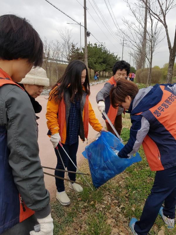 경기 김포시 풍무동행정복지센터가 지난 9일 계양천 산책로 일대 쓰레기를 수거하는 환경정화작업을 실시했다. 이날 풍무동 직원들과 통장 등 40여명은 풍무1교에서 풍무3교 구간의 하천과 산책로 일대 각종 폐기물과 쓰레기, 오물 등을 제거했다. 사진은 참여자들이 쓰레기를 수거하는 모습. (사진제공=김포시청)