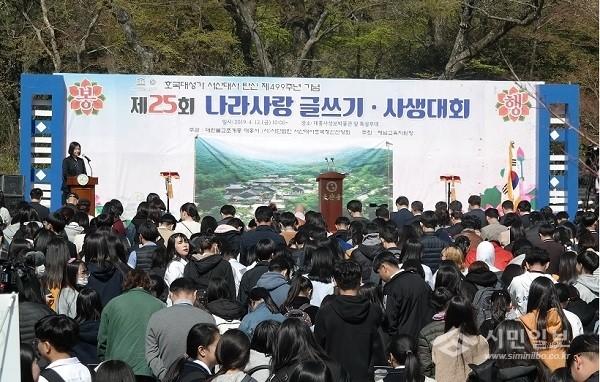 ‘나라사랑 글쓰기 사생대회’는 임진왜란 당시 73세 나이에도 불구하고 승병을 일으켜 나라를 구한 서산대사의 호국사상을 계승하고 나라사랑 정신을 받들고 본 받자라는 취지에서 시작됐다.