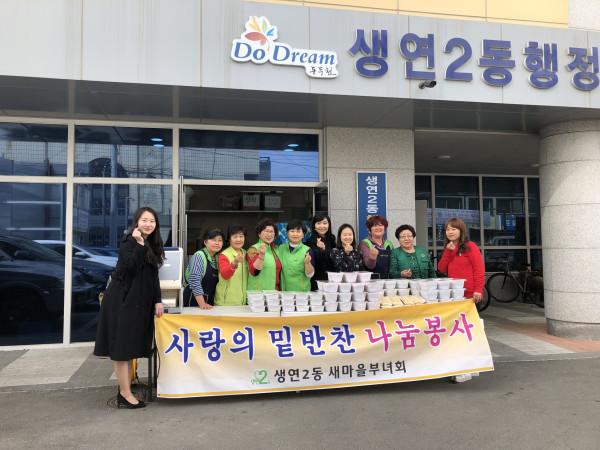 경기 동두천시 생연2동 새마을부녀회가 16일 직접 만든 돼지불고기, 겉절이, 계란말이, 떡 등의 밑반찬을 지역내 저소득층 26가구를 직접 방문해 전달했다. 사진은 새마을부녀회 및 관계자들이 손하트를 만들며 기념촬영을 하는 모습. (사진제공=동두천시청)