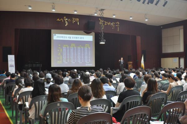 | ▲ 지난해 6월 진행된 ‘2019학년도 대입 준비 전략 설명회’에서 학부모들이 설명을 듣고 있다. (사진제공=동대문구청) | ||