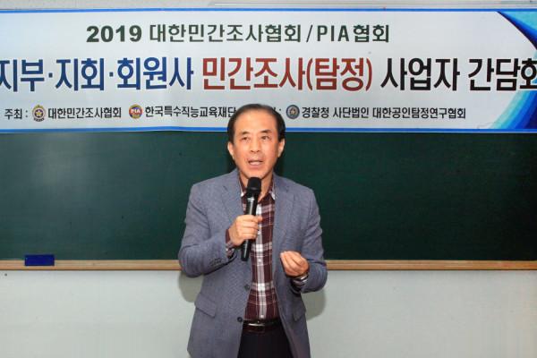 이번 간담회를 주최한 대한민간조사협회 하금석 회장은 2000년부터 19년에 걸처 대한민국 민간조사 탐정제도 법제화 추진을 위해 황무지에서 학술연구 개발은 물론 국내 최초 민간조사 전문서적 발행 등 PIA민간조사 전문 인력을 양성하고 있으며 현제 국회에서 경찰청 소관부처로 입법추진 중인 공인탐정제도 법제화 추진을 위한 노력이 이번 20대 국회에서 결실을 맺기를 기대한다면서 관련 업계 및 학계의 더 많은 지원과 협조를 강조했다.