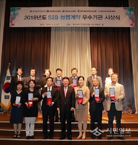 S2B 청렴계약 우수기관 상’은 S2B를 통해 공공기관의 전자조달 거래정착과 교육기관의 공정하고 청렴한 계약문화 조성에 기여한 우수 이용기관에 수여하는 상이며, 시상식은 8일 홀리데이인 광주호텔에서 열렸다.