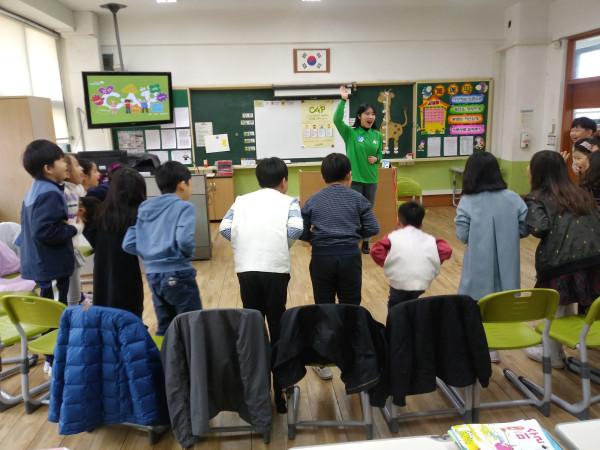 | ▲ 당산초등학교 3학년 학생들이 아동폭력 예방교육을 받고 있는 모습. (사진제공=영등포구청) | ||