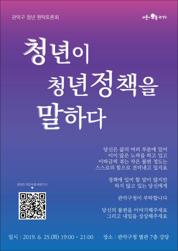 [시민일보=고수현 기자] 서울 관악구(구청장 박준희)가 오는 25일 오후 7시 구청 별관 7층 강당에서 '관악구 청년 원탁토론회'를 연다.