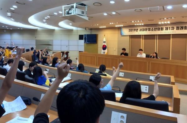 | ▲ 청소년의회 '2019년 제1차 정례회' 모습. (사진제공=서대문구청) | ||