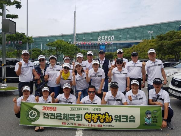 경기 남양주시 진건읍 체육회는 지난 30일부터 1박2일간 부산일원에서 체육회 임원 및 이사 30여명이 참석한 가운데 생활체육 활성화 워크숍을 개최했다. 이날 부산의 벡스코 및 주요 체육시설을 견학했다. 사진은 기념촬영을 하는 모습. (사진제공=남양주시청)