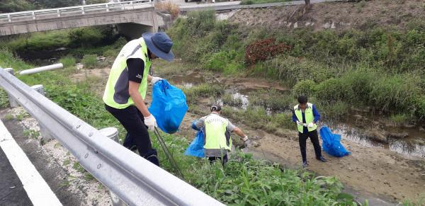 경기 이천시 대월면 주민자치위원회가 지역내 깨끗한 환경 조성을 위해 해룡천 주변 환경정화 활동을 실시했다. 이날 정화활동은 하천 주변의 잡풀 및 유해식물을 제거하고 방치된 생활쓰레기를 수거했다. 사진은 하천 주변 쓰레기를 수거하는 모습. (사진제공=이천시청)