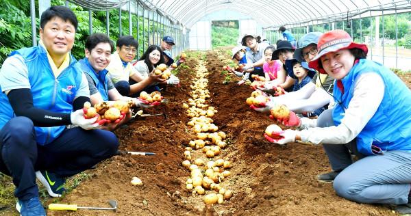 경기 광주시 공무원노동조합은 최근 영농철을 맞아 농촌일손돕기의 일환으로 도척면 방도리 일원에서 '감자캐기 봉사활동'을 펼쳤다. 이날 봉사활동은 조합원들과 가족들이 함께 참여해 직접 감자를 수확했다. 사진은 수확한 감자를 들고 기념촬영하는 참여자들의 모습. (사진제공=광주시청)