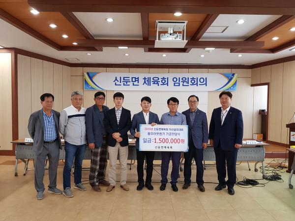 경기 이천시 신둔면체육회는 최근 신둔면행정복지센터에 지역내 복지사각지대에 놓인 소외된 이웃을 위해 사용해 달라며 성금 150만원을 기탁했다. 이날 기탁된 성금은 자선골프대회 수익금으로 마련된 것이다. 사진은 기념촬영을 하는 모습. (사진제공=이천시청)