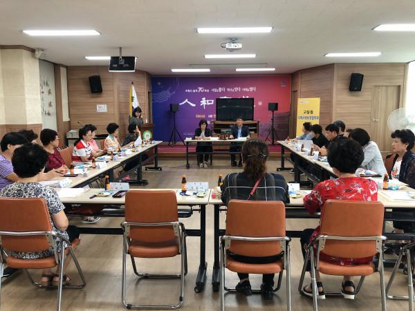경기 수원시 팔달구 고등동에서는 지난 5일 행정복지센터 대회의실에서 7월중 지역사회보장협의체 월례회의를 개최했다. 이날 회의는 2019년 신규 사업인 ‘고등천사 희망그루터기 사업’을 비롯한 각종 시정 홍보 사항을 전달하고, 여름 맞이 ‘고등어의 행복나눔 사업’ 세부계획에 대해 논의했다. 사진은 참여자들이 회의하는 모습. (사진제공=팔달구청)