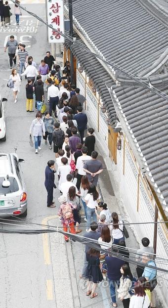 초복을 하루 앞둔 11일 서울 종로구의 한 삼계탕 전문점 앞에 손님들이 줄지어 서 있다.