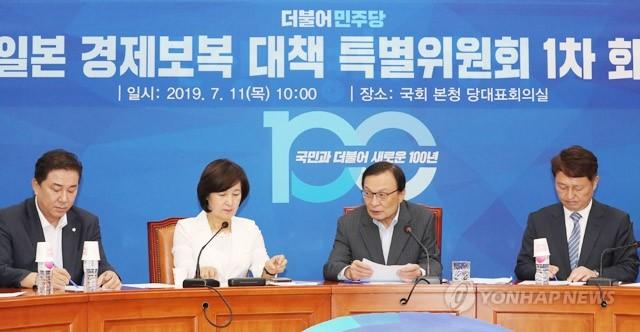 더불어민주당 이해찬 대표가 11일 오전 국회 당대표회의실에서 열린 일본경제보복대책특별위원회 회의에서 발언하고 있다.