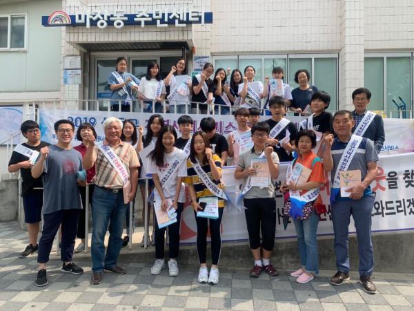 서울 성동구는 지역주민에게 복지사각지대 발굴에 대한 관심을 유도하기 위해 최근 17개동 지역사회보장협의체 위원, 중·고등학교 학생 등 451명이 참여한 가운데 민·관합동 복지사각지대 발굴 공동캠페인을 실시했다. 사진은 기념촬영을 하는 모습. (사진제공=성동구청)