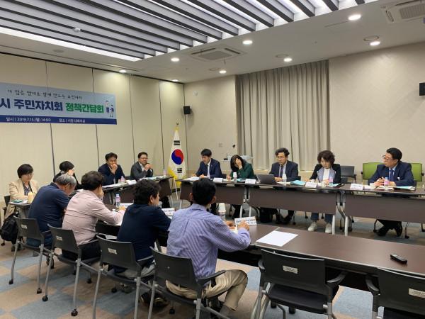 경기 화성시가 '화성형 주민자치회' 시범 실시에 앞서 전문가 및 시민들의 의견을 수렴하고자 15일 시청 대회의실에서 '주민자치회 정책간담회'를 열었다. 이날 회의는 기획행정위원회, 주민자치협의회, 전문가 등 30여명이 참석했다. 사진은 회의 진행 모습. (사진제공=화성시청)