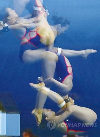 16일 오전 광주 광산구 남부대학교 시립국제수영장에서 열린 2019 광주세계수영선수권대회 다이빙 여자 10m 싱크로나이즈드 플랫폼 예선에서 한국의 문나윤이 다이빙하고 있다.