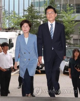 지난 4월 패스트트랙(신속처리안건) 처리 과정에서 여야가 충돌했을 때 상대 당 의원·당직자 등을 폭행한 혐의(공동폭행)로 자유한국당에 의해 고발된 더불어민주당 백혜련 의원(왼쪽)과 정의당 윤소하 원내대표가 16일 오전 서울 영등포경찰서에 피고발인 신분으로 출석하고 있다.