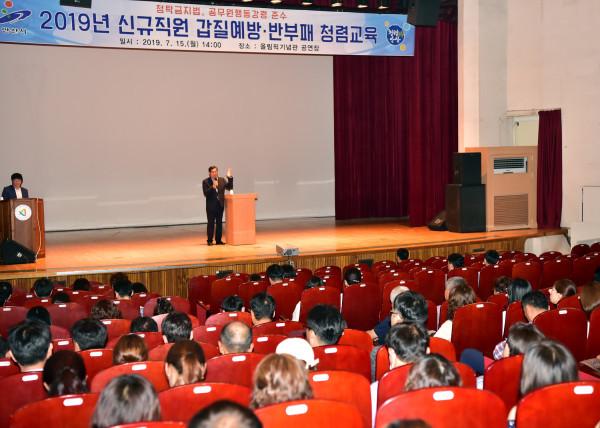경기 안산시는 최근 ‘직장 내 괴롭힘 금지법(근로기준법 개정)’이 시행됨에 따라 전직원 2000여명을 대상으로 갑질 근절을 위한 예방교육 및 청탁금지법, 공무원 행동강령 등의 내용을 담은 청렴 교육을 실시했다. 사진은 교육 진행 모습. (사진제공=안산시청)