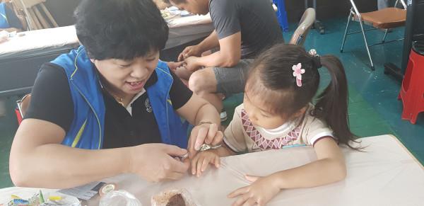 경기 포천시 포천동 주민자치위원회는 16일 지역내 어린이집 및 유치원 원생 300여명을 대상으로 봉숭아 물들이기 체험행사를 개최했다. 이번 행사는 위원회에서 직접 재배한 봉숭아꽃으로 마련됐다. 사진은 봉숭아 물을 들이고 있는 어린이 모습. (사진제공=포천시청)