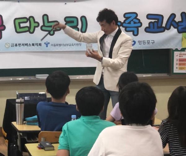 조석제 교수와 김청 마술사가 학교로 직접 찾아가서 교육을 진행한다.
