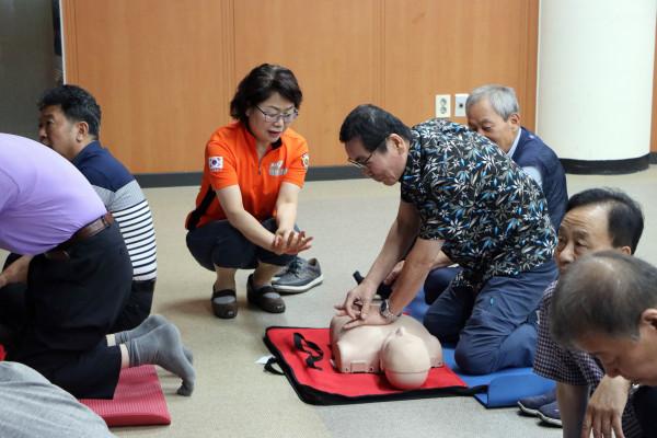 경기 하남소방서는 22일 오전 소방서 3층 대회의실에서 지역 마을버스회사 종사자 50여명을 대상으로 특별소방안전교육을 실시했다. 이날 교육은 운행 중 승객에게 발생할 수 있는 응급상황에 대비한 교육이 진행됐다. 사진은 심폐소생술 실습 모습. (사진제공=하남소방서)