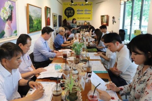 경기 연천군은 최근 군 소재 카페 '까라솔'에서 '청년과 함께하는 일자리 토론회'를 개최했다. 이날 토론회는 각계각층 청년대표와 사회적기업 등 20여명이 참석해 청년 일자리 정책에 대해 의견을 나눴다. 사진은 김광철 군수와 청년들이 토론하는 모습. (사진제공=연천군청)