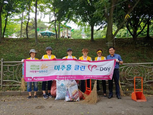 인천 미추홀구 문학동 행정복지센터는 23일 문학동 적십자봉사회와 함께 쓰레기 무단투기 취약 지역 정비활동을 전개했다. 이날 골목길 및 이면도로 등 쓰레기무단투기 취약지역을 중심으로 쓰레기를 수거했다. 사진은 기념촬영을 하는 모습. (사진제공=미추홀구청)