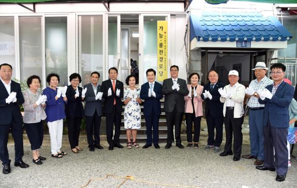 경기 의정부시는 23일 경로당 회원 등 80여명이 참석한 가운데 가능·풍전 경로당 개소식을 개최했다. 경로당은 연면적 93.07㎡에 지상 1층 규모로 조성됐다. 사진은 안병용 시장(오른쪽 일곱 번째)과 관계자들이 개소를 축하하는 모습. (사진제공=의정부시청)