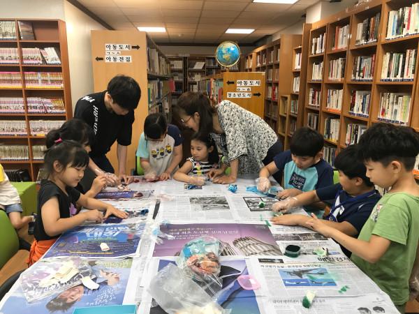 경기 수원시 영통구 매탄2동 새마을문고는 25일 오전 11시 가죽을 이용한 열쇠고리 만들기 일일 체험 수업을 진행했다. 사진은 수업에 참여한 어린이들이 가죽에 캐릭터 도장을 찍은 후 원하는 색상으로 물들여 열쇠고리를 만드는 모습.(사진제공=영통구청)