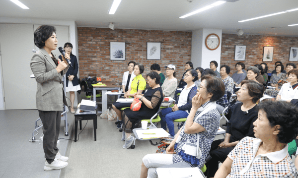 | ▲ 조은희 구청장은 지난 26일 ‘아동학대예방교육 및 인성검사’에서 확실한 처우개선을 약속하며 책임감 있는 아이돌봄을 부탁했다.(사진제공=서초구청) | ||