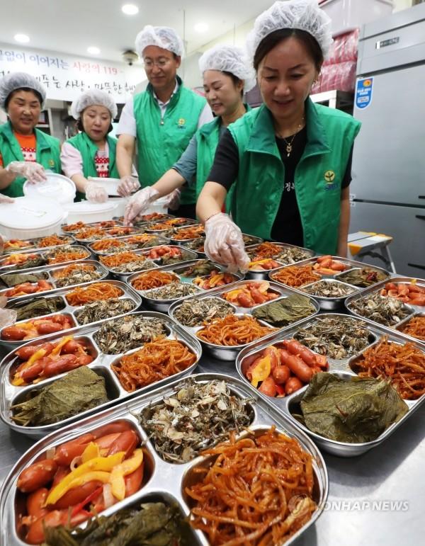 30일 오전 경기 수원시 권선구 평동행정복지센터에서 평동새마을부녀회 회원들이 여름방학을 맞은 취약계층 가정 등에 전달할 반찬을 준비하고 있다.