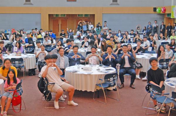 도봉구는 최근 구청 2층 선인봉홀에서 청소년 참여예산사업의 우선순위를 선정하는 ‘청소년참여예산 총회’를 개최했다. 이날 청소년들은 전자투표를 통해 최종 12건의 사업을 선정하고 우선순위를 결정했다. 사진은 기념촬영을 하는 모습. (사진제공=도봉구청)