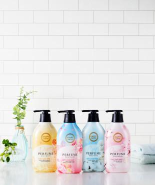 | ▲ 해피바스 퍼퓸 바디워시 4종 연출 컷. (사진제공=아모레퍼시픽) | ||