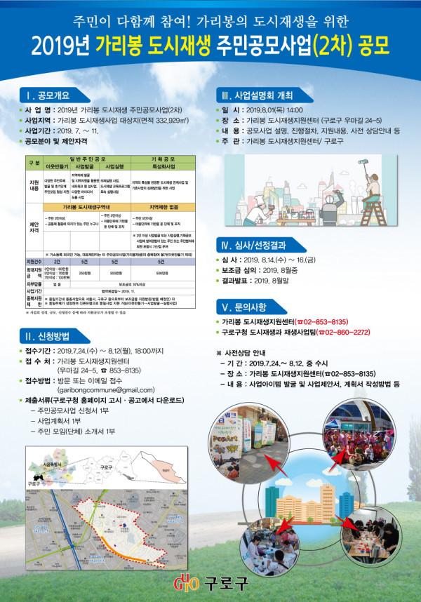 신청은 제안서·사업계획서·소개서 등을 구비해 가리봉 도시재생지원센터를 방문하거나 이메일로 접수하면 된다.