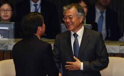 | ▲ 서울 여의도 국회 본회의장에서 열린 315회 국회(임시회) 제3차 본회의에서 민주통합당 문재인 의원이 무소속 안철수 의원과 인사를 나누고 있다. | ||