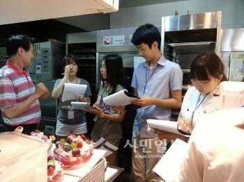 | ▲ '식품안전감시원 체험활동'프로그램에 참여한 고등학생들이 봉천동의 한 제과점을 방문해 위생점검을 하고있다. | ||