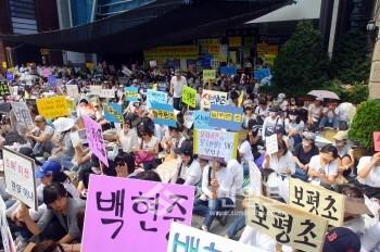 | ▲ 9일 경기 성남 서현동 법무부 수원보호관찰소 성남지소 앞에서 분당지역 학부모들이 기습 이전에 항의하며 밤샘 점거농성을 벌이고 있다. | ||